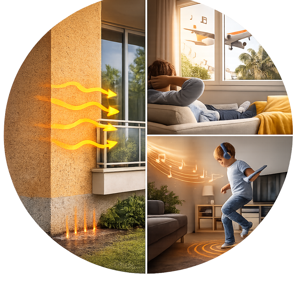 Además, aporta una mejora acústica frente a: